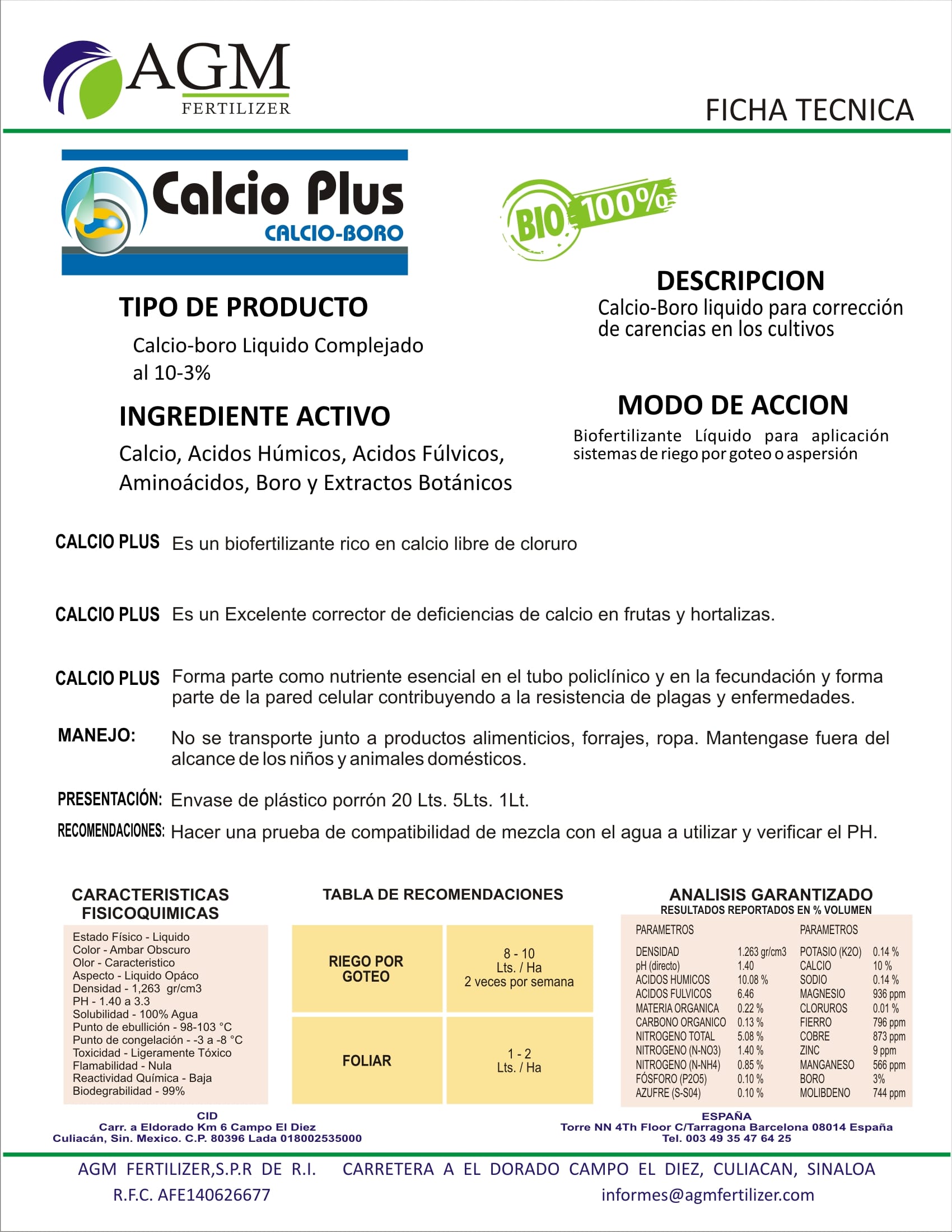 Calcio, Ácidos Húmicos, Ácidos Fúlvicos, Aminoácidos y Extractos Botánicos