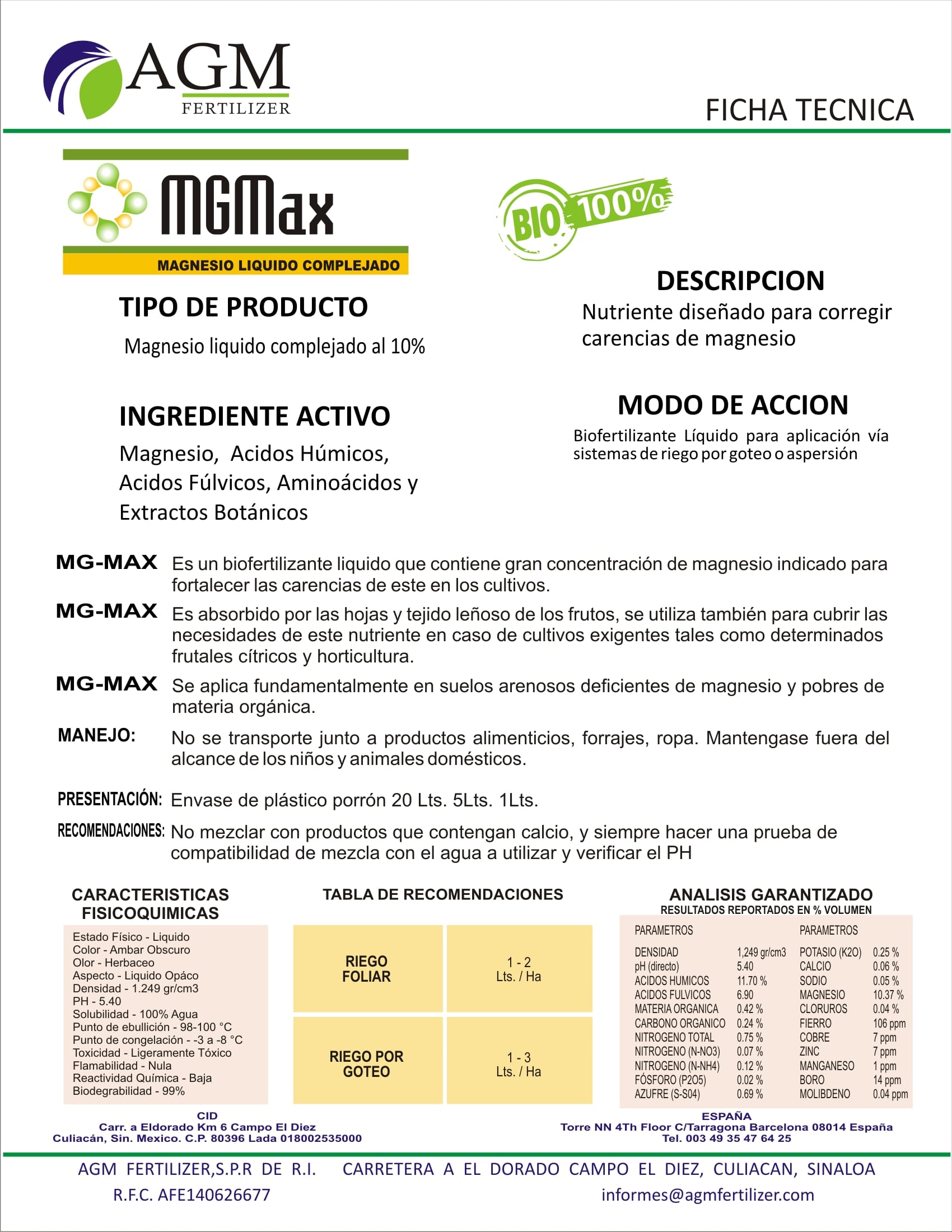 Es un biofertilizante liquido que contiene gran concentración de magnesio indicado para fortalecer las carencias de este en los cultivos.