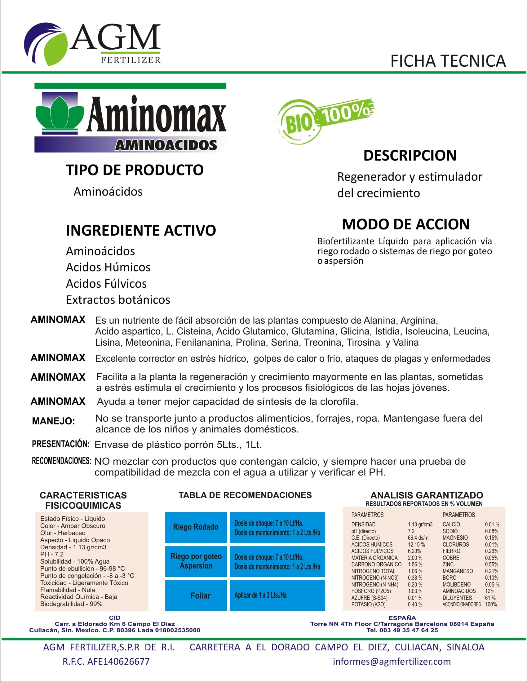 Aminoácidos, Ácidos Húmicos, Ácidos Fúlvicos y Extractos botánicos